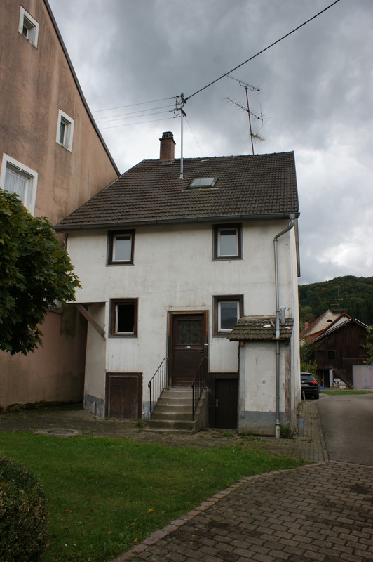 Im angetroffenen Zustand gliedert sich der Erdgeschossgrundriss in zwei Räume: in einen Küchenraum mit dem Treppelauf ins OG sowie eine Stube. Die Trennung der beiden Raumeinheiten erfolgt durch eine Fachwerkwand mit gefasten Türständern und wandhohen Blattstreben in den einfach verriegelten Wandfeldern. Das Wandrähm weist mit dem Deckengebälk keine konstruktive Verbindung (Verkämmung) auf. Von den drei Zugängen innerhalb der Traufwand ist wohl nur eine Öffnung als bauzeitlicher Bestand anzusprechen. So handelt es sich bei der Treppenverbindung zur vorgelagerten Fachwerkkammer um ein ehemaliges Fenster und der heutige Zugang liegt in einer deutlich ablesbaren Ausbruchstelle. Bliebe allein noch die Öffnung vor dem Treppenaufgang. Dass zumindest dieser Aufgang zum ältesten Bestand gehört belegt die Auswechslung des Treppenloches mit der entsprechenden Ausschmückung. Gleiches gilt für die Auswechslung eines ehemaligen Rauchfangs gegenüber. Bezogen auf die im Erdgeschoss vorhandenen Fenster ist allein die vermauerte Schlitzöffnung mit schräg verlaufender Laibung als bauzeitlicher Bestand anzusprechen.