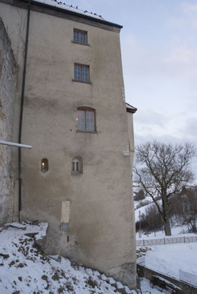 Verlegung des Zugangs vom Ober- ins Erdgeschoss, nachdem offenbar das obere Burgplateau vor dem Kapellenbau abgetieft wurde.