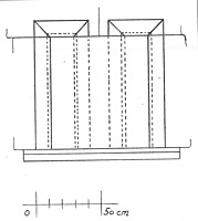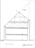 Dass dieses Datum mit hoher Sicherheit auf den ältesten Massivbaukörper übertragen werden kann, wird neben der Grundrissproportion und den Mauerstärken auch durch das an der Rücktraufe verbaute Fenstergewände unterstrichen (s), obschon nicht auszuschließen ist, dass auch das Gewände wiederverwendet wurde. (H.J. Bleyer)