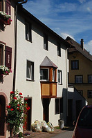 Dreigeschossiger und verputzter Satteldachbau mit nach Süden freiliegendem Giebel und Erker im 1. Obergeschoss.