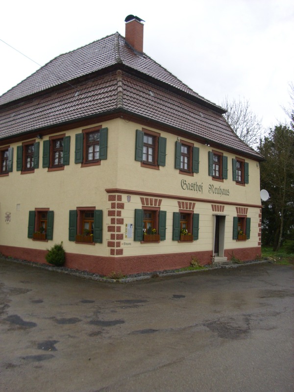 "Nordwestlich von Schörzingen, an der ehemaligen Schweizer Straße, liegt das Gasthaus Neuhaus. Die Schweizer Straße, in älteren Urkunden auch als „Heerstraße“ bezeichnet, war ein wichtiger Verbindungsweg, der nach Süden, über die Alpen bis nach Italien führte. An Gefällstrecken mussten für die aufwärts fahrenden Kutschen als „Vorspann“ zusätzliche Pferde zugespannt werden. Deshalb entstanden gerade an diesen Orten Gasthäuser mit Mietpferdeställen. Mit der zunehmenden Bedeutung des Automobils und dem Ausbau des Straßennetzes verloren diese Wegestationen jedoch an Bedeutung. Heute liegt der Gasthof Neuhaus am Jakobs-Wanderweg und bietet als Zwischenhalt Pilgern und - natürlich auch Einheimischen - Speis und Trank für eine kurze Rast. [...]