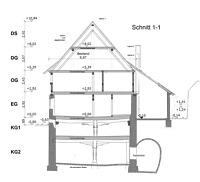 Querschnitt S-N-Querschnitt (Holderer 2010) / Fachwerkhaus in 79346 Endingen (13.04.2016 - Holderer (2010))