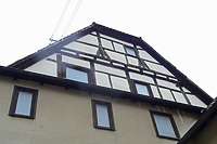 Im 1. und 2. DG gehört schließlich die erneuerte Westfassade einschließlich der Stichbalken und des westlichen Krüppelwalms im 2. DG zu dieser Bauphase.