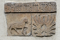 An der Nordfassade befindet sich ein Relief, das aus drei Einzelteilen besteht. Das obere Stück ist ein Fragment einer Minuskelinschrift, das bisher weder vom Verfasser noch von einem weiteren zu Rate gezogenen Historiker entziffert werden konnte. Zwei weitere Wappen dieses zusammengesetzten Reliefs deuten darauf hin, dass es noch ins 15. Jahrhundert datieren könnte. Es wäre demnach ein Hinweis darauf, dass sich im EG bis zum Ladeneinbau in der 2. Hälfte des 20. Jahrhunderts noch ältere Bausubstanz vor 1506/07 (d) befand.