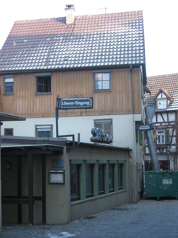 Nach dem Häuserbuch wurde in dem alten Metzgeranwesen 1853 die Gastwirtschaft „Zum Löwen“ eingerichtet (Ausleger).
