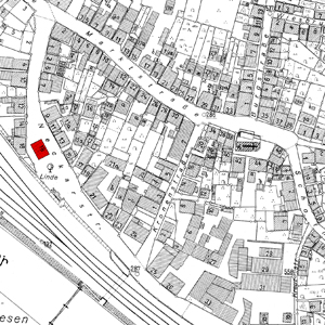 Liegt heute erhöht am Marktplatz in der Ortsmitte. Bis Mitte der 70er Jahre stand das Gebäude neben den Bahngleisen am Neckar.