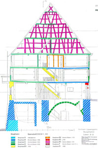 Löwenapotheke, Längsschnitt, Ansicht S, Bauphasenplan