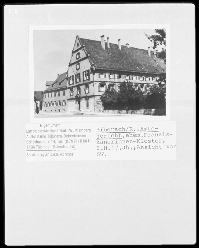 Ansicht von Südwest / Ehem. Franziskanerinnenkloster, heute Amtsgericht in 88400 Biberach a. d. Riß, Biberach an der Riß (LAD Baden-Württemberg, Außenstelle Tübingen)