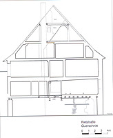 Ein weiteres Gebälk ist senkrecht zur Straßenflucht gespannt. Insgesammt sind sechs Balken erhalten, die sich durch gleichartige Fasen an der Unterseite auszeichnen. Sie gehören einer jüngeren Umbauphase des frühen 17. Jahrhunderts an und werden an dieser Stelle nicht weiter berücksichtigt.