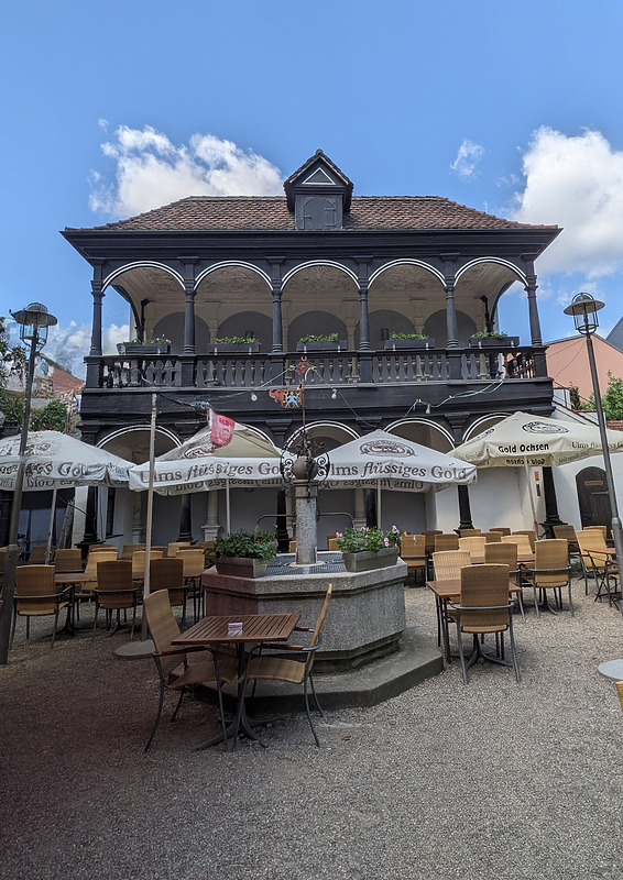 Am westlichen Hofrand der Brauerei-Gastwirtschaft "Drei Kannen", im nördlichen Altstadtzentrum von Ulm.