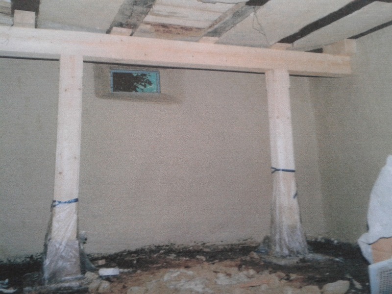 Bei den Renovierungsarbeiten entdeckte man einige bestehende Notreparaturstellen, die früher mit Ziegelbruch ausgemauert worden sind. Diese Stellen wurden mit neuen Lehmziegeln ausgemauert, kleinere Löcher mit Hanf oder selbstgemachtem Lehm-Stroh-Gemisch ausgestopft.