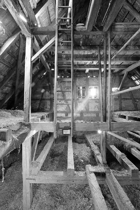 Über der Tenne und dem Barn befindet sich eine jüngere, quer gespannte Deckenbalkenlage. Die ursprüngliche Decke über dem Barn ist dagegen eine über den beiden Torsturzbalken aufliegende Längsbalkenlage. Die Dachbalkenlage ist entsprechend nur in den beiden äußeren Längszonen ausgeführt und mit den Längsunterzügen verdollt.