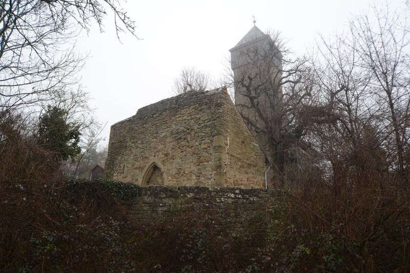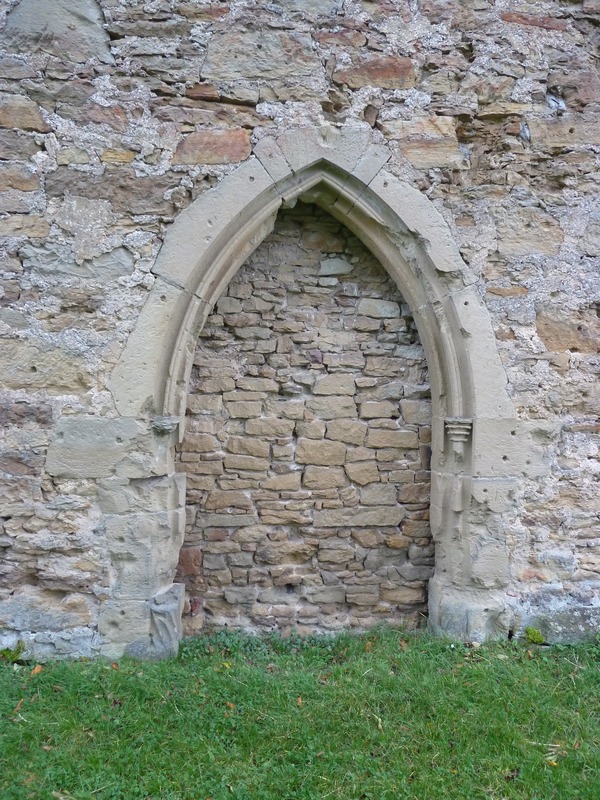 Durch die Zerstörung der Kirche während des 30-jährigen Krieges, klafft eine große Lücke zwischen Chor und den Überresten des Langhauses. Der ehemalige Durchgang vom Chor zum Langhaus bildet nun den Eingang der Kapelle. Unterhalb der Westseite des Turmschaftes ist der ehemalige Anschluss des Langhausesdaches an den Turm deutlich zu erkennen.