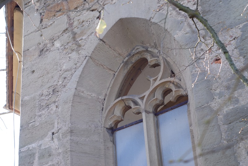An den Natursteinflächen im Außenbereich lassen sich mehrere Schadensbilder erfassen. Im Sockelbereich der Kapelle liegen Rückwitterungen und Fehlstellen vor, am Chor abschuppende Werksteine sowie Risse in den Fassadenflächen aus Naturstein. Weiterhin sind auch ein Großteil der Fugen schadhaft oder offen.