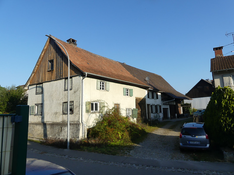 Im angetroffenen Zustand weitgehend verputzt bzw. verschalt, gliedert sich der Bau in einen südlichen Wohnteil mit angrenzendem Wirtschaftsteil. Letzterer mit Scheuneneinfahrt und Stall im rückwärtigen Anbau.
