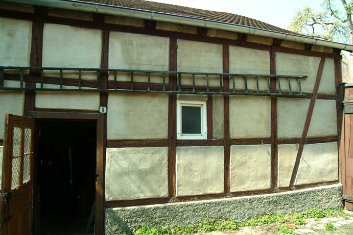 Von diesem ältesten Gebäude hat sich nur die südliche Zone erhalten. Im Obergeschoss sind in der südlichen Querzone noch drei Deckenbalken erhalten, die jeweils ein Überblattungsnegativ an der Unterseite aufweisen, das auf ein ursprünglich hier befindliches Wandrähm hindeutet. Die drei Deckenbalken gehören offenbar ebenfalls noch zur ältesten Bauphase (nach 1421 (d)) und geben auch für das OG eine ursprünglich zweischiffige Konstruktion mit einem schmalen trapezförmigen Flurschiff an, das aber in der südlichen Querzone vielleicht auch nur noch als Unterzug weiter geführt war.