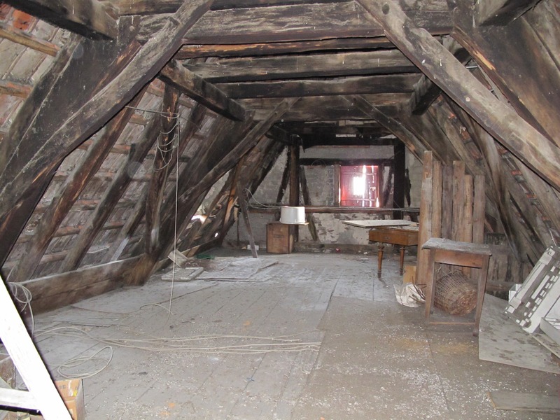 heute im nördlichen Bereich eine kleine Wohnung auf. In der südlichen Hälfte befindet sich ein Zwischenboden als Lagerraum. Im Obergeschoss und 1. Dachgeschoss befinden sich jeweils zwei Wohneinheiten. Das 2. Dachgeschoss ist unausgebaut und dient zu Lagerzwecken. Am Dachtragwerk lässt sich noch gut die historische Grundrissgliederung in fünf Quer- und zwei Längszonen ablesen. In den Vollgeschossen handelt es sich um drei Längszonen, wobei die mittlere Zone einen Längsflur aufnimmt. Bemerkenswert ist dabei, dass sich offenbar die gesamte historische Tragstruktur vom Erdgeschoss bis ins Dach erhalten hat und noch sehr gut ablesbar ist.