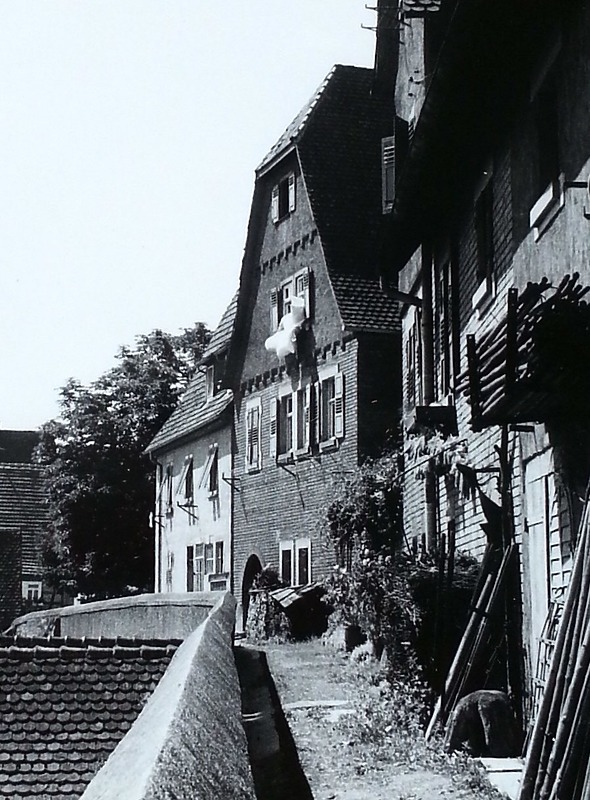 Beschreibung im Feuerversicherungskataster 1784 (a): "Neccar Seite. Unten in der Stadt auf dem Bühl Nr. 24. Ein Haus und Keller an der Stadt Mauer".