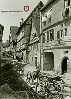 Gemischt Giebel- und Traufbauten des 16.-18. Jh. an beiden Seiten der Gasse.