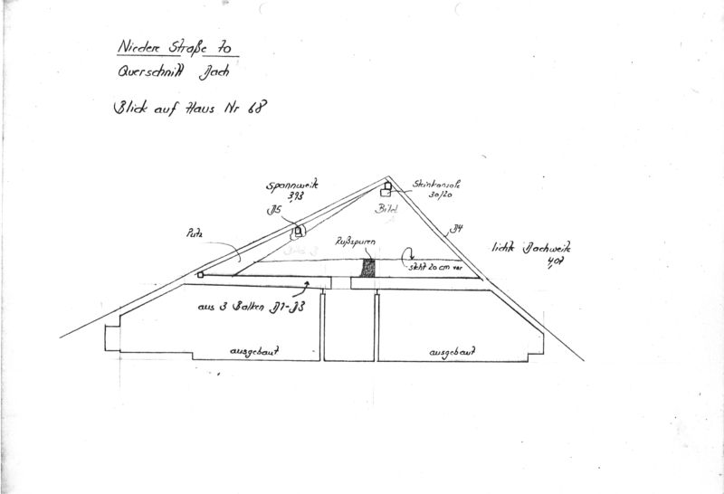 Traufständiger, ehem. ca. 15m tiefer Massivbau mit 3 Geschossen.