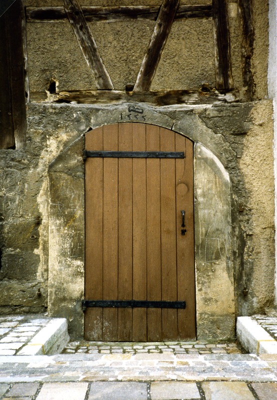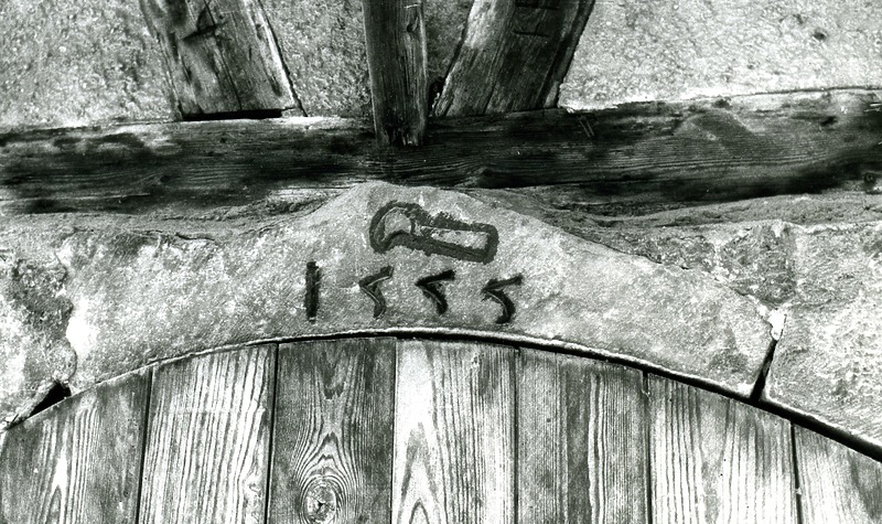 Vermutliche Erbauung des Gebäudes (Bezeichnung "1555") durch einen Weingärtner. (a)
