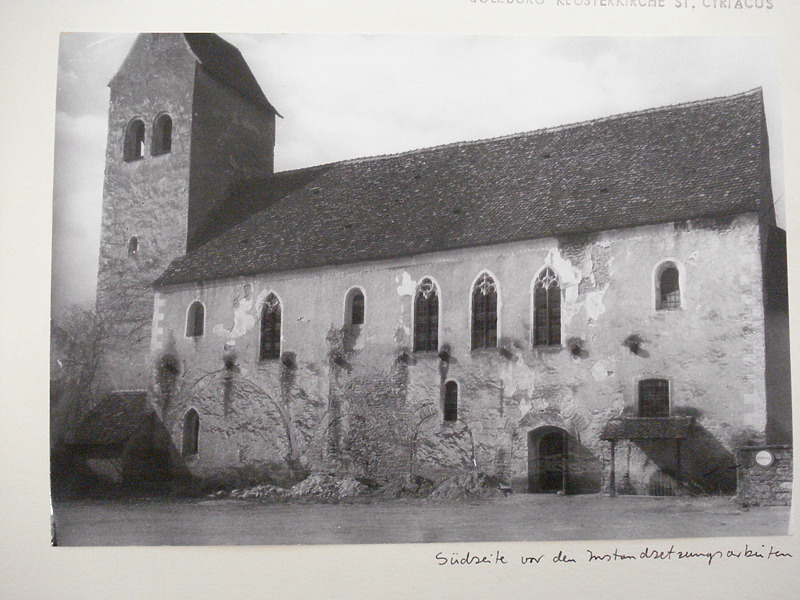 Die Klosterkirche zählt zu den wichtigsten Vertreter der ottonischen Sakralbaukunst in Deutschland gilt. Ihr Mittelschiff und die Ostapsis wurden um 1000, der Turm im 13. Jahrhundert anstelle der Westapsis erbaut. (a) Die dendrochronologische Untersuchung belegt, dass das Dachwerk des Glockenstuhls 1473 (d) und das des Langhauses 1509 (d) abgezimmert wurde. Kurz nach 1500 wurden vier Maßwerkfenster eingebaut. 1555 wurde das Kloster aufgehoben.