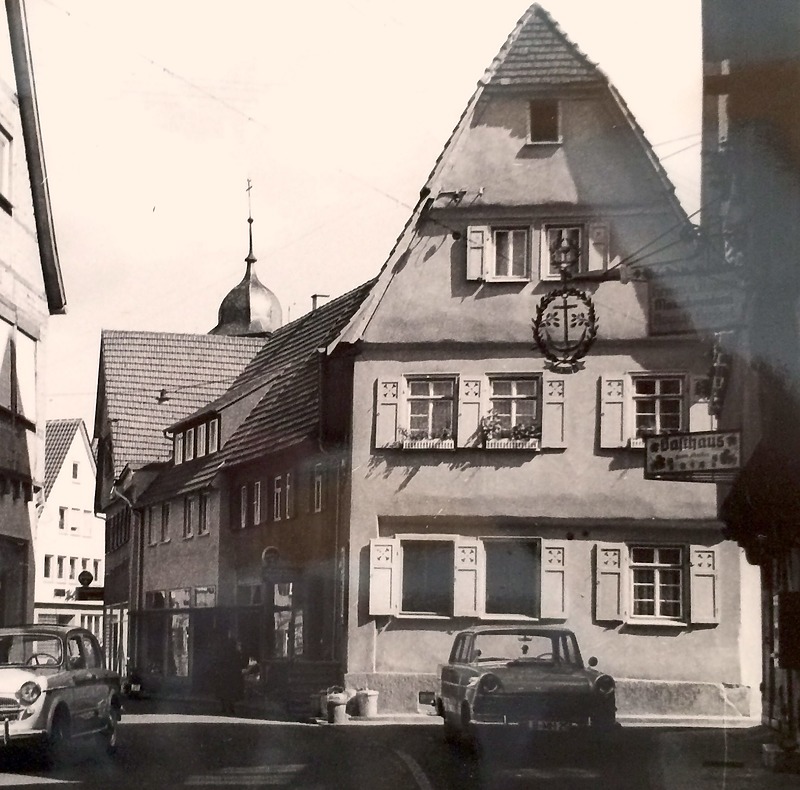Der Ehenachfolger Reuschles ist der Bäcker Andreas Friedrich Schnoll. Die Witwe Katharina Friederike bringt das Haus mit in die Ehe: Bäckerei und Restauration Friedrich Scholl. (a)