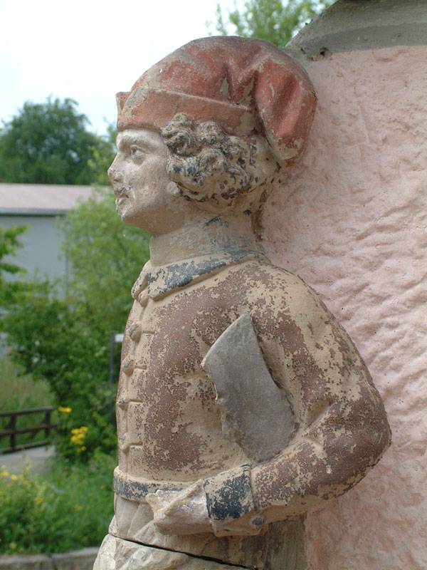 Wappenträgerfigur an Hausecke / Hof Wyrich, Haus Mannsperger, Dosterhaus; Wohn- und Wirtschaftsgebäude aus Tamm in 71732 Tamm (http://www.freilichtmuseum-beuren.de/museum/rundgang/wohn--und-wirtschaftsgebaeude-aus-tamm/)