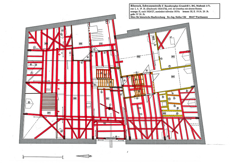 Baualtersplan: Grundriss 1. Dachgeschoss / Gerberhaus in 88400 Biberach, Biberach an der Riß (04.2022 - Stefan Uhl)