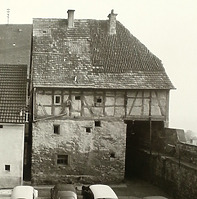 Abgegangenes zweistöckiges Fachwerkwohnhaus mit Kellergewölbe und einem Gang auf die Stadtmauer. Es lag im Bereich des Platzes neben dem Rathaus, direkt an der Stadtmauer. (a)