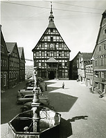 Marktplatz mit Brunnen im Zuge der Stadtgründung um 1220/30 angelegt.