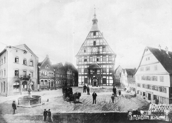 Grundform des Platzes mit Rathausbau gegen Ende des Mittelalters abgeschlossen.