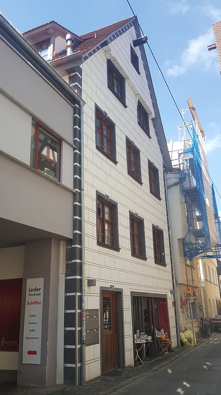Das Gebäude wurde 1419 (d) in stockwerkweiser Abzimmerung zwischen zwei massiven Traufwänden errichtet. Zumindest der tiefer liegende nördliche Keller könnte noch zu einem Vorgängerbau gehören. 1601/ 1602 (d) fand eine erste Umbauphase statt. Im Südosten wurde im 17./ 18. Jh. ein dreigeschossiger Anbau (Laube) mit zweitverwendeten Hölzern errichtet. In seinem EG befand sich offenbar ein überwölbter Raum, der in der 2. Hälfte des 19. Jh. der Kohlenlagerung diente. Im Südwesten errichtete man in der 1. Hälfte des 19. Jh. einen zunächst eingeschossigen Anbau, der um 1953 bis zur Zweigeschossigkeit erhöht und mit einem Blechdach versehen wurde. 1837 erfolgte der Bau eines weiteren Anbaus, der zuerst als Stall und dann als Werkstatt diente. 1912 erfolgte mit der Fassadenumgestaltung die Gebäuderenovierung. (a)