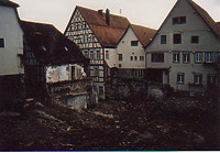 Das Gebäude Säumarkt 5/ 1 stand im Bereich zwischen Gelbinger Gasse 4 und 6 bzw. Blendstatt 3. Der Bau war mit einem zur Gelbinger Gasse ebenerdig liegenden, größeren Gewölbekeller errichtet. Dieser ist 1995 ebenfalls abgebrochen worden. Erhalten bleiben weitere Kelleranlagen im Untergeschoss, die bis unter die Gelbinger Gasse führen. In der Ostfassade, Profil 4, von Gelbinger Gasse 4 und 6 konnte hier nun in Resten ein älteres Mauerwerk mit Werkstein gefasster Tür beobachtet werden. Nach der erhaltenen Profilierung und Steinbearbeitung dürfte das Mauerwerk zu einem Baukörper des 16. Jahrhunderts gehören. Dieser stand auf den beiden Parzellen Gelbinger Gasse 4 und 6. Nach dem Brand (1680) erfolgte die heutige Parzellenteilung und die entsprechende Neubebauung des Bereichs. Die Ostwand des älteren Baukörpers wurde in Teilen als Fundament wiederverwendet. Das Gebäude Gelbinger Gasse 6 ist offensichtlich später mit Gebäude Nr. 8 unter einem Dach zusammengefasst worden. (gk)