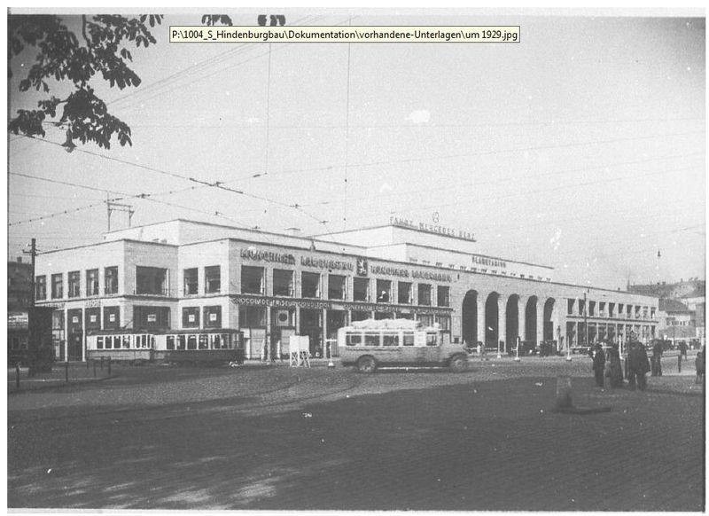 Die Architektengemeinschaft Professor Hans Paul Schmohl, Albert Eitel, Georg Staehlin und Richard Bielenberg leitete Mitte der 1920er Jahre die Planungen für den Hindenburgbau. Der Entwurf wurde teilweise von Paul Bonatz übernommen. Ein Gegenstück zum Hauptbahnhof sollte das Gebäude werden und war als sechsstöckiges Bauwerk konzipiert. Mit den Bauarbeiten wurde im November 1926 begonnen und das Gebäude am 29. Februar 1928 fertiggestellt. Zur Eröffnung war der Hindenburgbau allerdings zunächst nur dreigeschossig realisiert worden. Auf das Dach wurde eine Kuppel des städtischen Planetariums aufgesetzt.