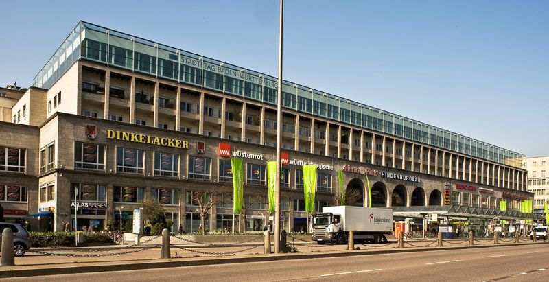 Das Gebäude liegt gegenüber des Stuttgarter Hauptbahnhofs an der Ecke Königstrasse, Arnulf - Klett - Platz.