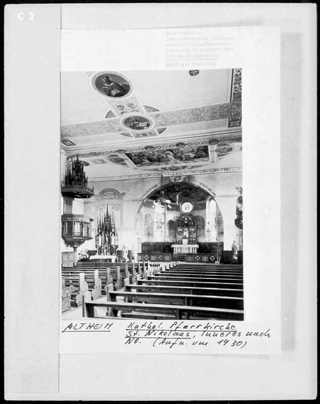 Östlicher Umbau nach Plänen des aus Altheim stammenden Architekten Josef Cades mit Errichtung des Querhauses und halbkreisförmiger Apsis; Ausstattung; Fenster und Ausmalung in Querhaus und Aspis im Jugendstil von Franz Xaver Zeller.