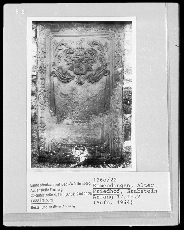 Umfriedung des Friedhofs aus Bruchsteinmauerwerk mit Grabsteinen bis 1884; u.a. Karl Friedrich Meerwein (Markgräf. bad. Landbaumeister), von 1810;