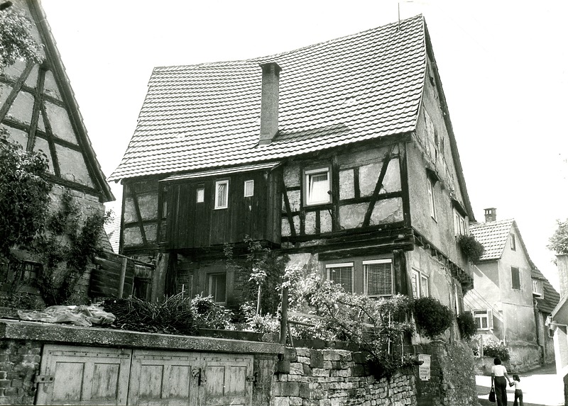 Hofanlage mit Fachwerkwohnhaus, Kern 15. Jahrhundert mit baulichen Veränderungen bzw. Erweiterungen im 16. Jahrhundert; das Gebäude ist bezeichnet mit den Jahreszahlen "1544", "1579", "1664" und "1979"; am Haussockel Mauerreste des ehemaligen sogenannten Inneren oder Näheren Neckartores. Dazugehörende Fachwerk-/Massivscheuer aus dem 18. Jahrhundert. (a)