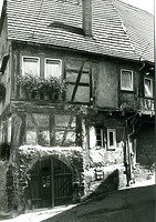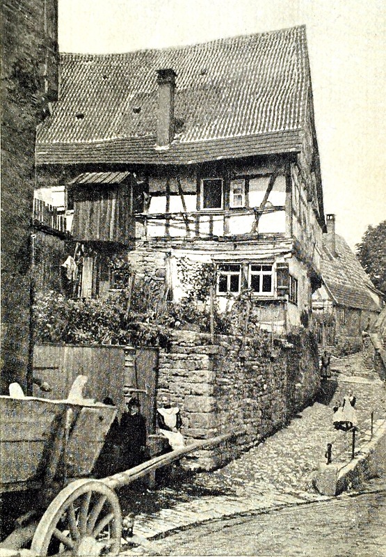 Erste nähere Beschreibung in der ältesten erhaltenen Steuerbuchreihe der Stadt: "Aine Behausung, Scheuren, Keller sambt einem Gärttlen darbey, an Alt Heinrich Neuffers Erben einer , andererseits aber an Hanns Pfeiffers und Georg Rösers Scheuren...". Eigentümer ist "Georg Grauen Hausfrau". (a)