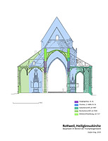 - nachträgliche Stützkonstruktion unter Einbeziehung des Originalbestands als neue Tragstruktur; auf Höhe des Gebälks unter dem Glockenstuhl als eigenständiges Gerüst gegründet, nach oben hauptsächlich in Form zusätzlicher Ständer und Abstrebungen bis in Ebene 6, wo nur noch auf die Westseite konzentriert; Einbau im 19. Jahrhundert, genaue Datierung unklar.