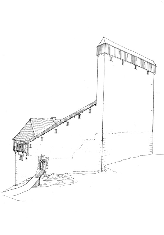 Noch im 14. Jahrhundert erhielt der südwestliche Eckbau eine weitere Aufstockung mit einem Fachwerkaufsatz. Der auf der Nordmauer teilweise erhaltene Wehrgang erfuhr