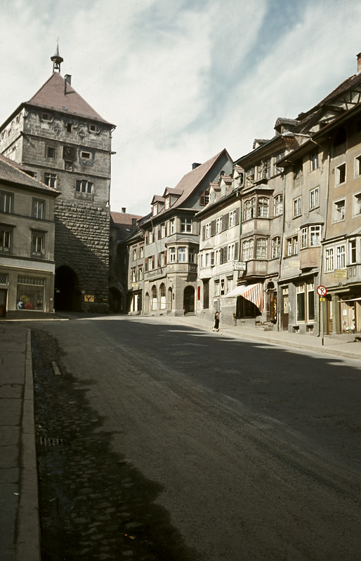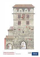 Sein oberer Abschluss ist für die Bauzeit unklar, doch später wurde ein hölzerner Aufbau aufgesetzt. Nur eine Schlitzöffnung war nach Westen gerichtet und auf der Nordseite befindet sich ein hochliegender Eingang. Die Buckelquader der Außenhaut verleihen dem Turm eine martialische Erscheinung, hinter der sich eine ausgesprochen präzise und durchdachte Bauweise verbirgt. Die erstaunliche Stärke der Außenmauern – auf Feindesseite 3,4 m – übertrifft die Stärke der früheren Stadtmauer, vor die der Turm weit vorsprang, bei weitem. Damit wurde ein außerordentlich repräsentativer Zugang an der höchsten Stelle der damaligen Stadtanlage und am oberen Ende der Hauptstraße als Lebensader der Stadt geschaffen.