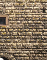 In Lager- und Stoßfugen des Quaderverbands des Oberbaus – einschließlich der ersten Steinlage oberhalb der Buckelquader – und des Treppenturms stecken Stopfstücke aus verschiedensten Materialien, die auf die Errichtung zurückgehen, mit denen auch Hohlräumen des Tuffsteins gefüllt wurden: Dolomit, Stuben-, Bunt- und seltener Schilfsandstein, Tonschiefer, Flach- und Hohlziegel. Vor allem aus der Nähe betrachtet ergeben deren Farben ein buntes Bild. Das war so sicherlich nicht gewollt und kann nur damit erklärt werden, dass die Mauerflächen einen deckenden Verputz erhalten haben. Davon finden sich im 1. Oberbaugeschoss auf der Südseite noch große Partien, deren abgewitterte Oberfläche den Tuffsteinen sehr ähnlich sieht.