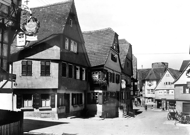 Eckgebäude links im Bild / Wohn- und Geschäftshaus in 74354 Besigheim (Stadtarchiv Besigheim)