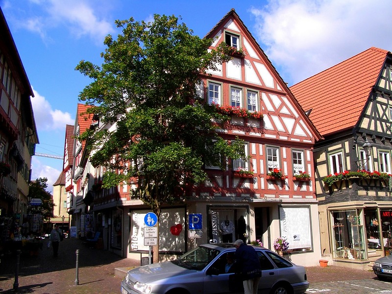 Zweistöckiges Fachwerkwohnhaus in Ecklage, mit Kellergewölbe und Giebeldach; alemannisches Fachwerk. Das Haus wurde wohl in der ersten Hälfte des 16. Jahrhunderts anstelle eines Vorgängergebäudes errichtet. (a)