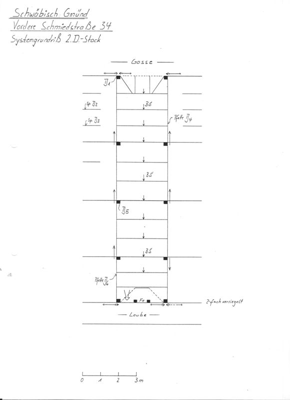Zugänglich war nur der 2. Dachstock. Das Fachwerk des rückwärtigen Giebels zeigt einen originalen Zugang zur ehemaligen Laube. Die heutige Laube ersetzt die ehemalige Altkonstruktion.