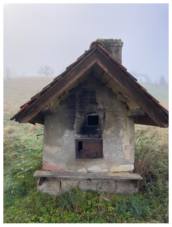 Aus Bruchstein gemauert und mit Schamottsteinen ausgekleidet, teilweise mit Lehm verfugt; dach mit Biberschwanz gedeckt.