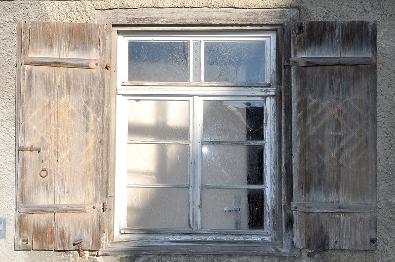 Griffoliven und Vorreiber dienen zum Öffnen bzw. Verschließen der Flügel. Ein kippbares Oberlicht wird ebenfalls mit Vorreibern verschlossen. Erhalten sind die Fenster im Hühnerstall, in Werkstatt und zweiter Schlafkammer sowie in der Speisekammer. Zum Fenster zugehörig sind auch die aufwendig gearbeiteten und beidseitig mit einem farbig hervorgehobenen Zierornament versehenen Klappläden.