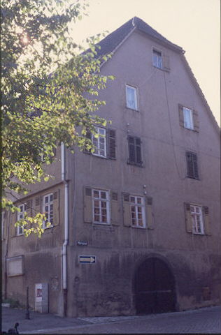 Die Stadtgemeinde Besigheim besitzt: "Nr. 110 Ein zweistockiges Gebäude (1 a 35 qm), oben in der Stadt, das Eckhaus zwischen der Pfarr und Kirchgasse, mit gewölbtem Keller, Wohnung der deutschen Schullehrer, auf Sockel, sonst Fachwerk". (a)